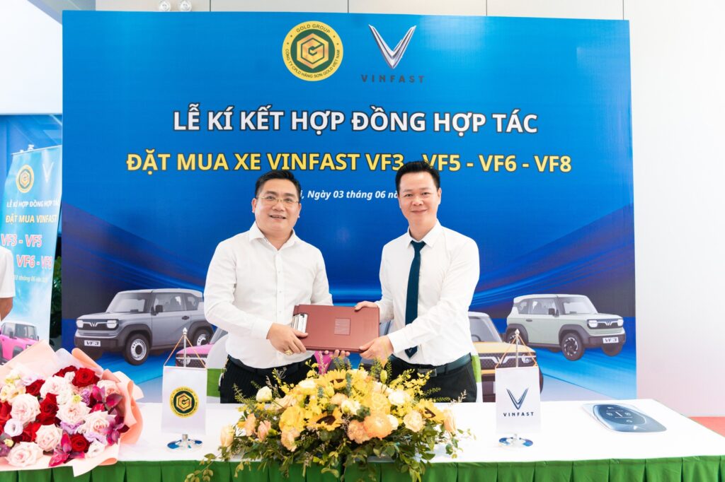 Ngày 03/06/2024 Tổng Giám đốc Phạm Quý Cường đại diện Gold Group và Giám đốc Kinh Doanh Trần Quốc Tuấn đại diện VinFast Phan Trọng Tuệ đã thành công ký kết hợp đồng.