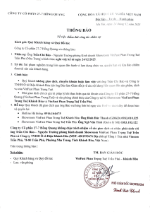 Công ty Cổ phần 27-7 Hồng Quang trân trọng thông báo tới Quý Khách hàng và Quý Đối tác: