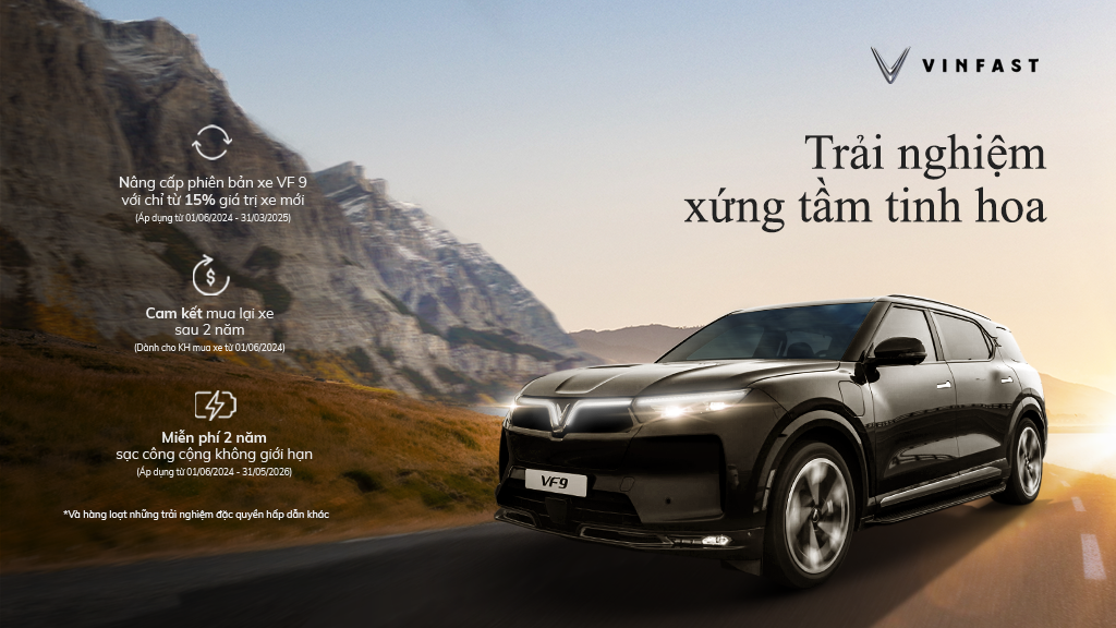 Từ ngày 01/06/2024, VinFast áp dụng chính sách chăm sóc khách hàng đặc biệt dành riêng cho dòng xe cao cấp nhất dải sản phẩm – VF 9. Với những đặc quyền chưa từng có tiền lệ như cam kết mua lại xe đã qua sử dụng với giá lên tới 78% giá ban đầu; trả thêm 15-20% để đổi phiên bản mới; miễn phí sạc 2 năm; được ưu tiên phục vụ riêng…, VinFast không chỉ mang đến trải nghiệm xuất sắc, xứng tầm đẳng cấp cho khách hàng, mà còn khẳng định vị thế của hãng xe có chất lượng dịch vụ tốt nhất thị trường.